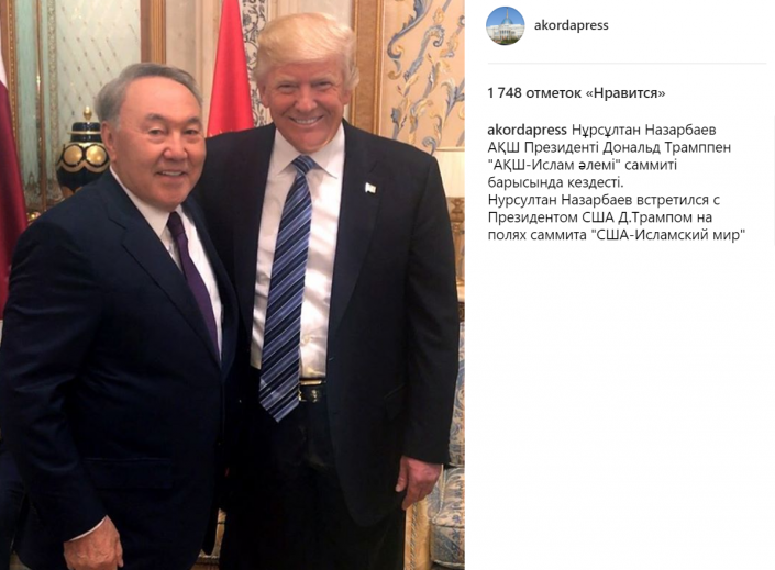 Совместное фото Главы государства Нурсултана Назарбаева и президента США Дональда Трампа появилось на официальной странице Акорды в Instagram, передает Tengrinews.kz.