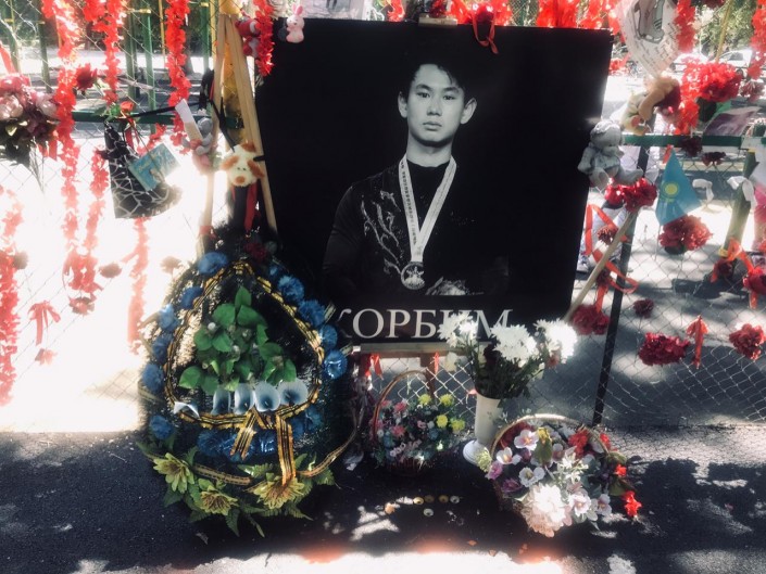 Несмотря на сильную жару и разгар рабочего дня, возле памятника Денису Тену в Алматы многолюдно. Среди тех, кто хочет почтит память чемпиона, люди разных возрастов и профессий.