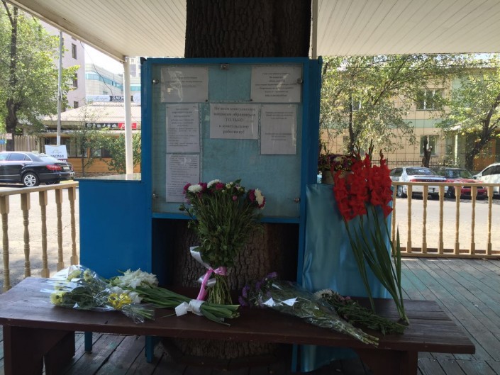 Алматинцы возлагают цветы у посольства Узбекистана Фото ©Tengrinews