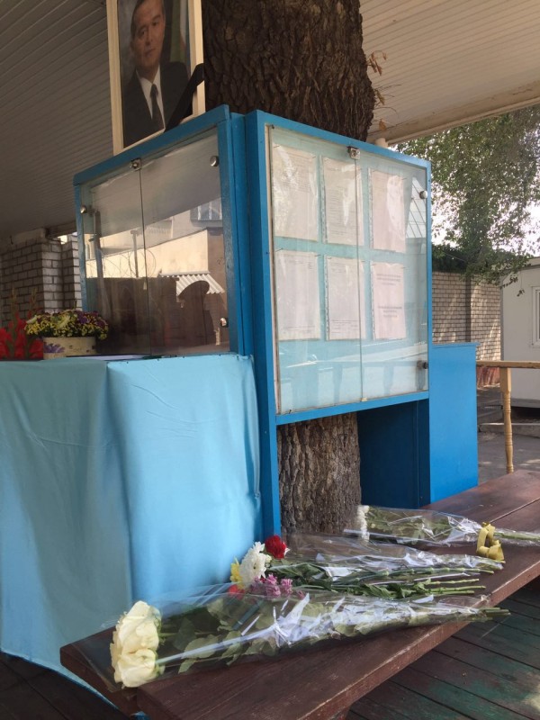 С самого утра субботы жители города, а также узбекистанцы, проживающие здесь, оставляют букеты цветов и записи в книге соболезнований.