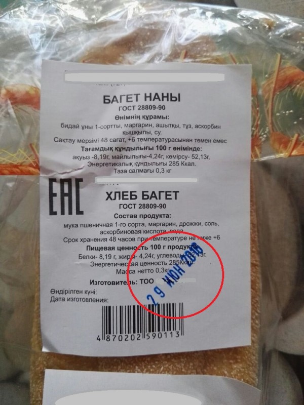 Алматинец купил хлеб "из будущего", сообщает корреспондент Tengrinews.kz. Фотографии необычной покупки он прислал в редакцию.