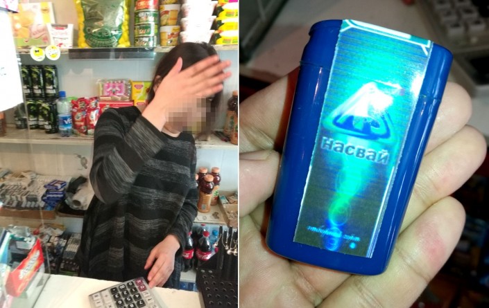 По его словам, насвай упакован в пластиковые коробки. По наблюдениям Оспанова, в данный киоск насвай поставляется массово, и школьники, как утверждает очевидец, его покупают.