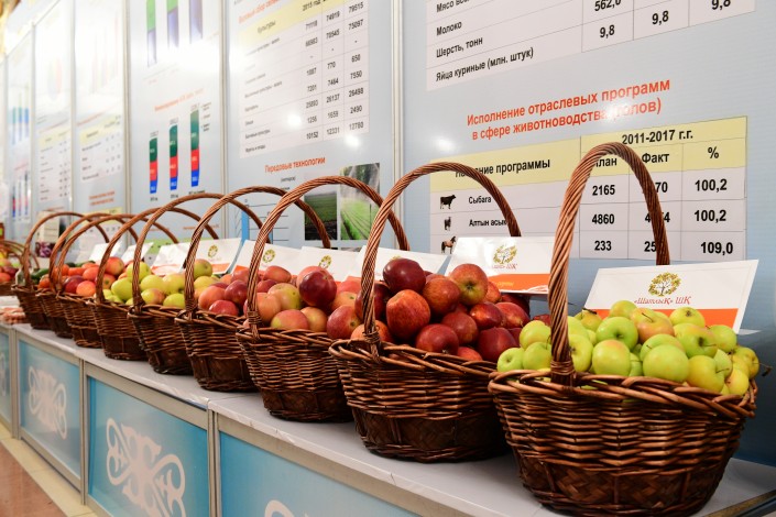 Выставка, организованная в холле Дворца культуры имени Жансугурова, представила разнообразную сельхозпродукцию со всех районов и городов области. Это и фрукты, и овощи, и разнообразная мясная и молочная продукция, хлебные изделия, напитки и многое другое. О достижениях сельскохозяйственной сферы области подробно рассказал документальный фильм, открывший торжественное собрание.