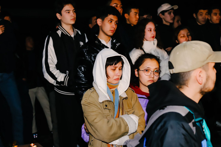 Алматинцы начали собираться на Арбате сразу после заката. Смерть Darkhan Juzz стала настоящим шоком для его поклонников и всех любителей музыки в Казахстане.