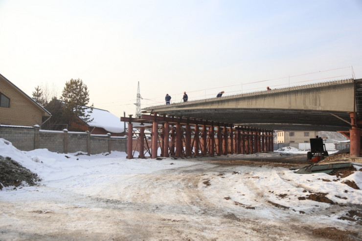 Отметим, что параллельно продолжается возведение моста через улицу Ашимова. Эстакаду построят на месте снесенных домов. Часть развязки уже сооружена, поэтому сейчас активно идет работа по сносу коттеджей.