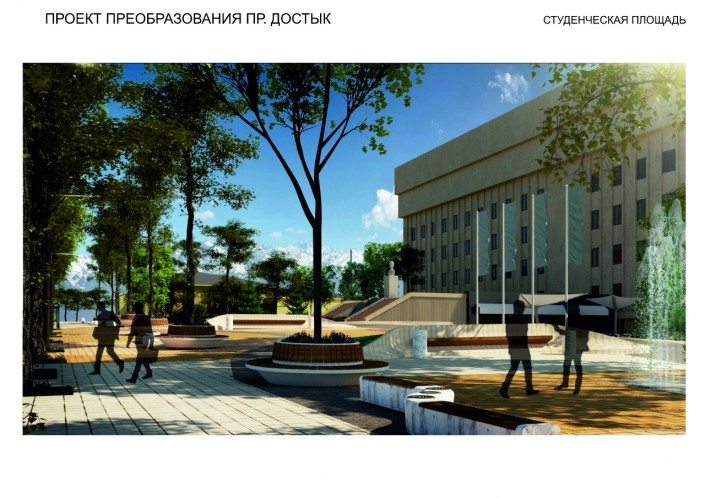 Реконструкция проводится по концепции "Город для людей". На этих улицах появится экологичная тротуарная плитка, энергосберегающее тротуарное освещение, уличная мебель, спортивные и детские площадки, современные малые архитектурные формы. Кроме того, к единому стилю будут приведены все входные группы зданий. Планируется озеленение и посадка новых деревьев с сохранением существующих, а также прокладка автоматической системы полива и замена старых арычных лотков.