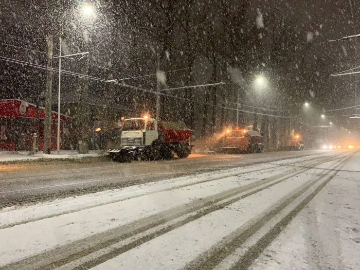 С 00:00 коммунальными службами города проводится посыпка дорог противогололедным материалом. С 3:30 организованы колонны по сгребанию снега в сопровождении патрульных машин дорожной полиции. На магистральных улицах снег сгребали трижды. Усилены работы по механизированной и ручной очистке тротуаров, пешеходных зон, остановок общественного транспорта, мест общего пользования.
