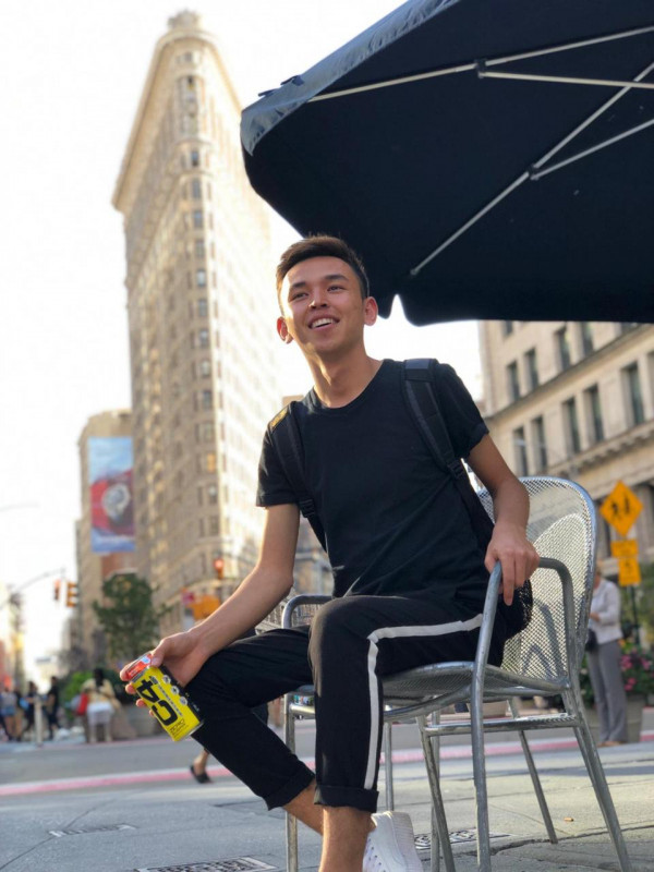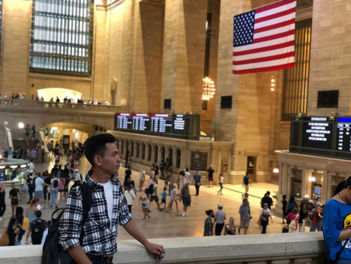 Дастан Барлыбай на Таймс-сквер в Нью-Йорке.