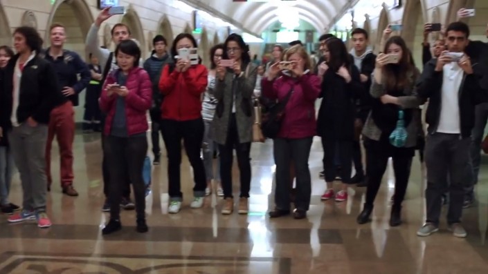 Необычный перформанс устроили в метро Алматы американская балетная труппа Island Moving Company и казахстанский театр современного танца Samruk. Молодые артисты продемонстрировали пассажирам метрополитена красивые танцевальные движения. Видеозапись флешмоба появилась на странице U.S. Consulate Almaty в Facebook.