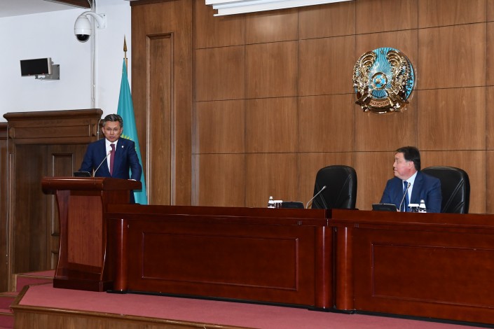 Представляя министра экологии, геологии и природных ресурсов Магзума Мирзагалиева, Аскар Мамин отметил его квалификацию и опыт работы.