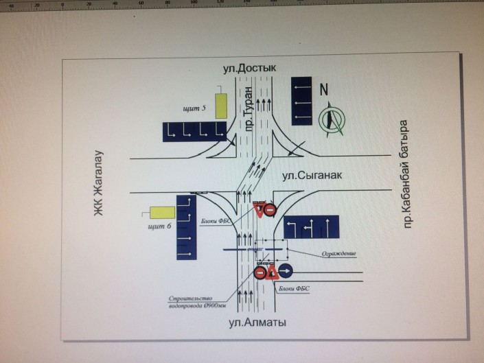 При этом для увеличения пропускной способности по проспекту Туран также временно будут исключены полосы Bus Lane на подходах к перекрестку с двух сторон и организовано движение общего потока по всем полосам. Также будет исключен левый поворот с проспекта Туран на улицу Марьям Жагоркызы, и выезд с указанной улицы на проспект Туран будет осуществляться через местный проезд проспекта (напротив ТРЦ "Сарыарка").