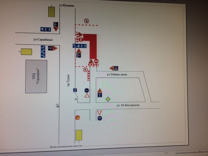 Сообщается, что для увеличения пропускной способности будут временно исключены полосы Bus Lane с проспекта Кабанбай батыра и организовано движение общего потока по всем полосам, а также исключены левые повороты с проспекта Кабанбай батыра на улицу Сыганак, как со стороны улицы Достык, так и со стороны улицы № 31. Аналогично будет исключен левый поворот с проспекта Кабанбай батыра на улицу Алматы в сторону улицы Сауран.