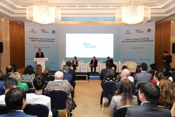 В форуме участвуют руководители государственных и местных исполнительных органов, бенефициары проекта - лучшие практики из разных регионов РК, а также менторы, которые обучают молодых людей ключевым навыкам ведения своего дела.