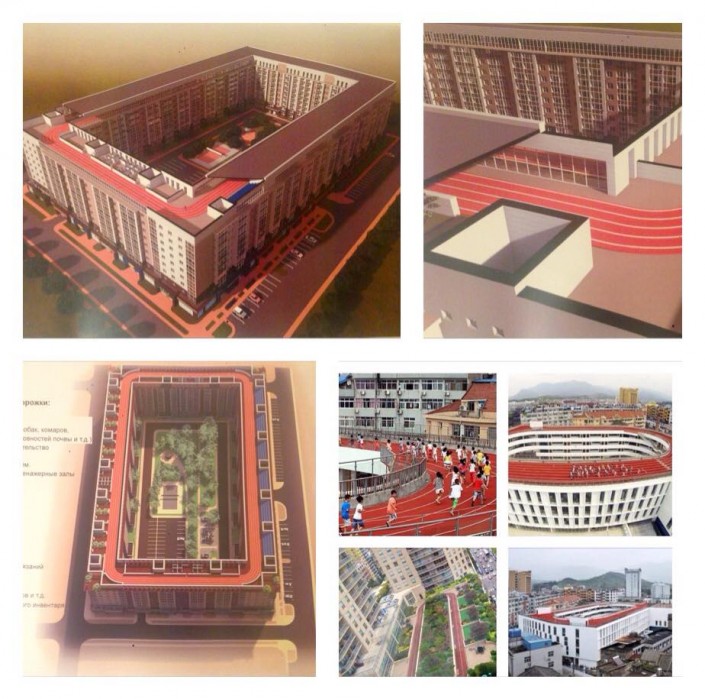 В Астане хотят построить первый в мире дом с километровой беговой дорожкой на крыше 200-метровая беговая дорожка на крыше школы в Китае. © novate.ru