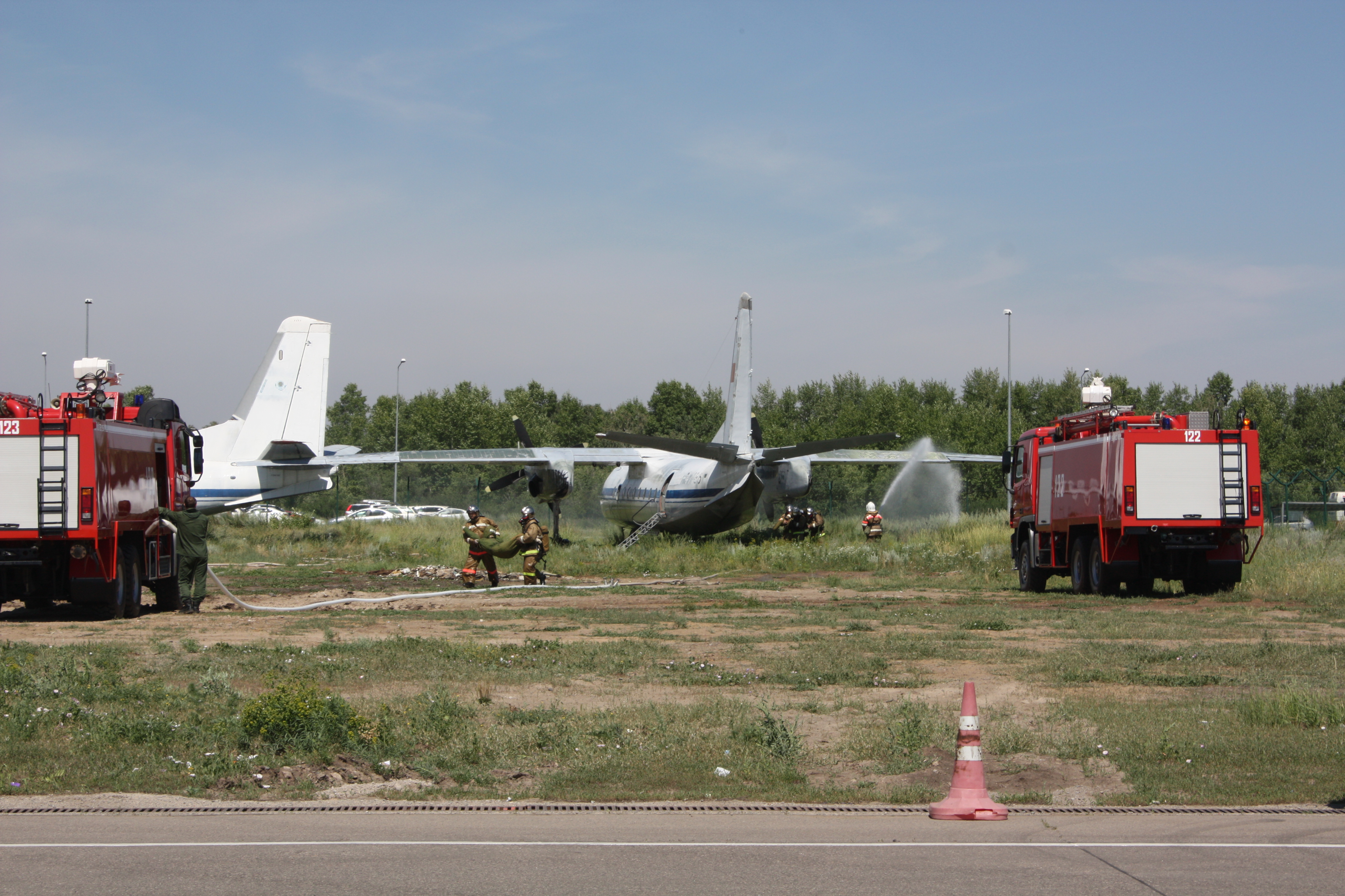 Как сообщается, были проведены пожарно-технические учения, где отрабатывался случай тушения воздушного судна, потерпевшего крушение.