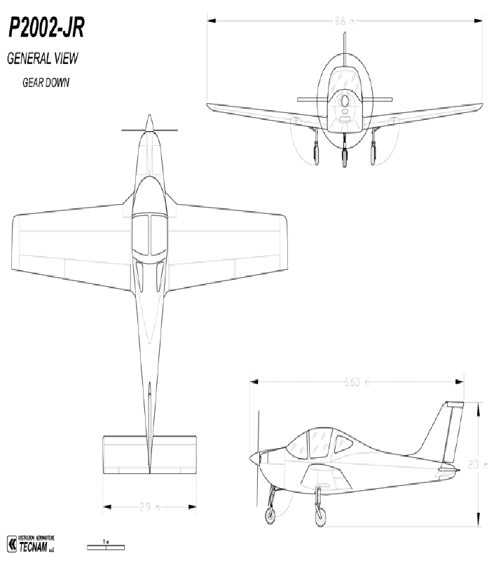 Дальность полета составляет от 589 до 693 морских миль. Максимальная скорость - от 230 до 250 километров в час. Расход топлива - 17 литров в час на всех модификациях. Может также использоваться автомобильное топливо. Размах крыльев составляет 8,9 метра. Длина 6,63 метра. У модификации P2002-JR максимальная взлетная масса достигает 350 килограммов. Полезная нагрузка - 250. Практический потолок 4572 метра.