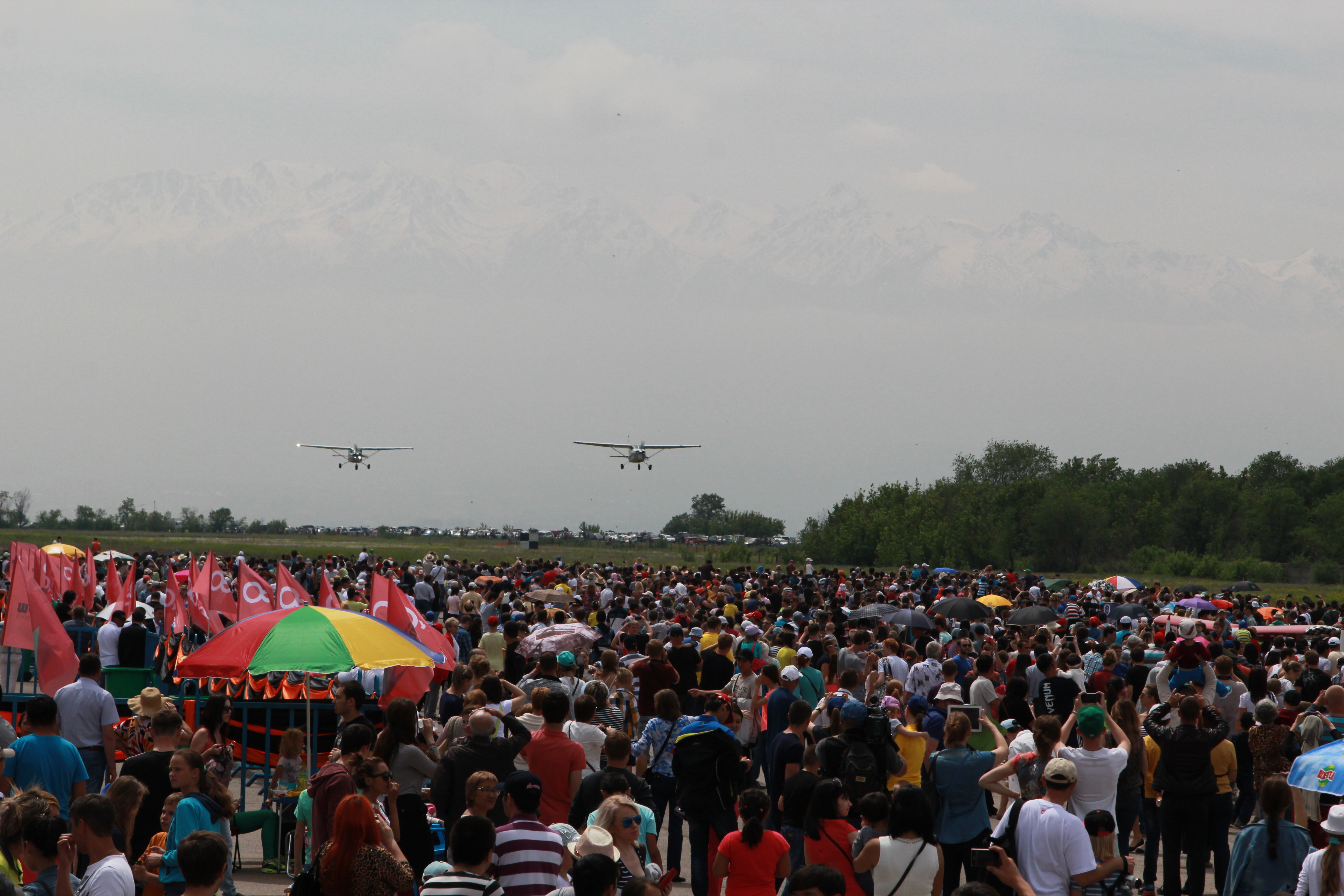 После открытия авиашоу гости смогли увидеть парад черлидеров и показательное выступление десантно-штурмовой бригады. Затем началась основная часть мероприятия - летная программа. По очереди вверх взмывали тяжелые вертолеты Ми-8МТ, принадлежащие пограничным войскам КНБ РК, а также гражданские вертолеты марок EC, Bell и BO. Кроме того, прямо над головами зрителей пролетали лекгомоторные самолеты типа Cessna, Sinus, Virus и два автожира ELA 07S. В воздухе они показывали фигуры высшего пилотажа. Стоит отметить, что на авиашоу пришло множество детей. Они не только увидели воздушные суда на деле, но и имели возможность рассмотреть их вблизи.