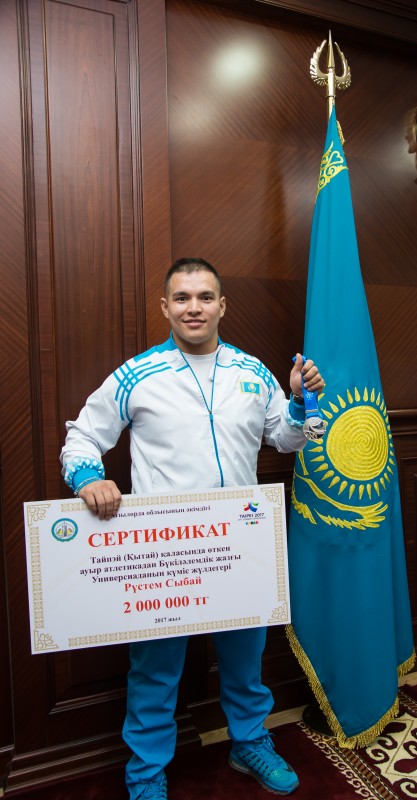 Тяжелоатлет Рустем Сыбай же занял второе место на 29-й Всемирной летней универсиаде, которая прошла в период с 19 по 30 августа в китайском Тайбэе. Аким области поздравил спортсменов и призвал достичь побед на Азиатских играх в Южной Корее и на Олимпиаде в 2020 году в Токио.