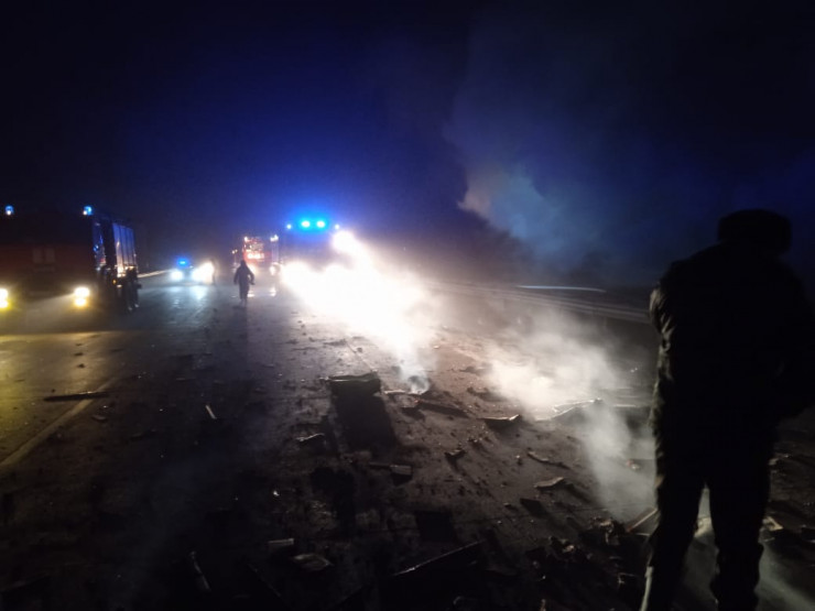 "Произошло возгорание полуприцепа грузового автомобиля марки DAF, груженного пиротехническими изделиями, на площади 30 квадратных метров, кабина транспорта в результате пожара не пострадала, сгорел полуприцеп полностью. Пожар локализован в 22.05. Движение на автодороге восстановлено в 22.40. Жертв и пострадавших нет. На месте работают силы ДЧС (19 сотрудников и четыре единицы техники)", - сообщила пресс-служба ведомства.
