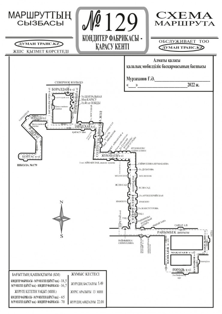 Маршрут №129, двигаясь в северном направлении, будет заезжать в микрорайон Карасу, а при движении в южном направлении будет ехать прямо по улицы Заводская", - рассказали в транспортном холдинге города.