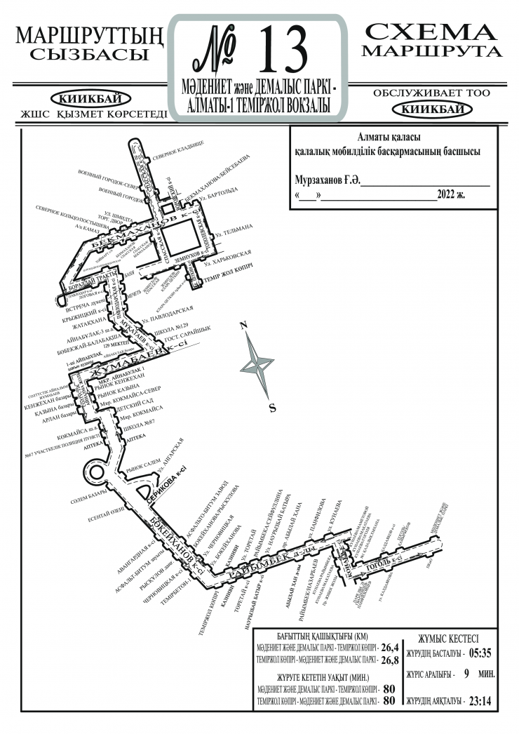 В Турксибском районе движение маршрута №13 по улице Спасская продлили до Северного кладбища. Далее по схеме.
