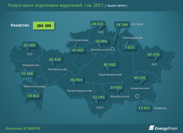Услуги по подготовке водителей упали на 2 процента за год, сообщается в исследовании Energyprom.kz.