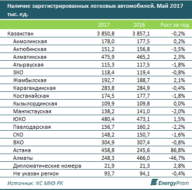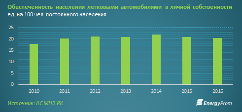 Падает и показатель обеспеченности населения личными легковыми авто - по итогам 2016 лишь 20,4 процента казахстанцев имели свою машину, в 2015 - 20,8 процента, в 2014 - 22 процента.