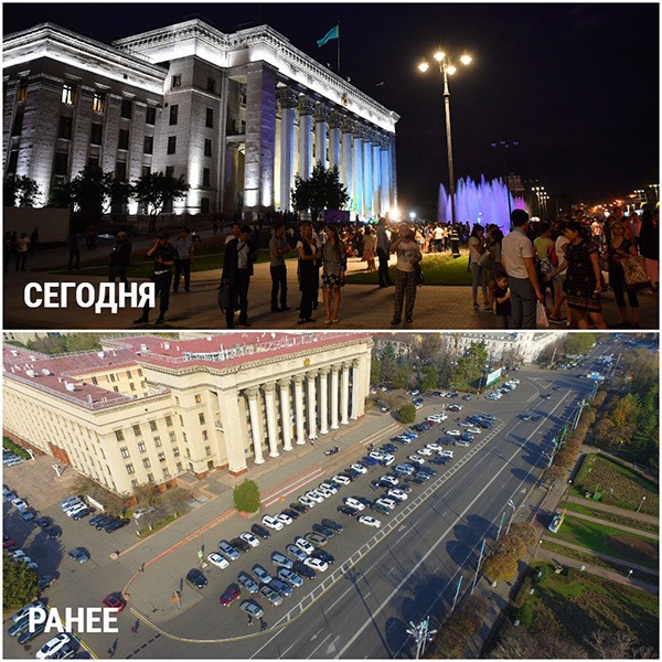 Помимо расширения пешеходных зон с использованием более эстетичного и экологичного покрытия, были расширены площади озеленения, запускаются новые фонтаны, устанавливается энергосберегающие уличное и тротуарное освещение, обновлены фасады зданий. К примеру, только по проспекту Абая были модернизированы более 200 кафе, ресторанов и магазинов.