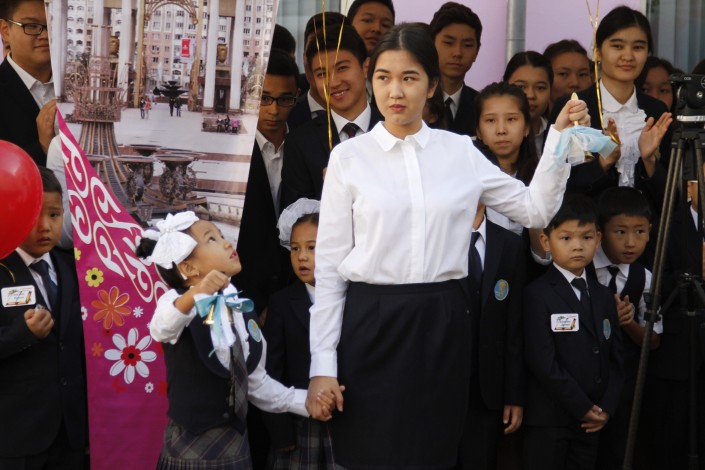Аким Алматы Бауыржан Байбек посетил линейку, посвященную Дню знаний в гимназии № 159 имени Алтынсарина, передает корреспондент Tengrinews.kz. Он поздравил собравшихся учеников, их родителей и учителей с началом нового учебного года.