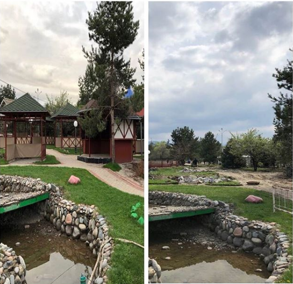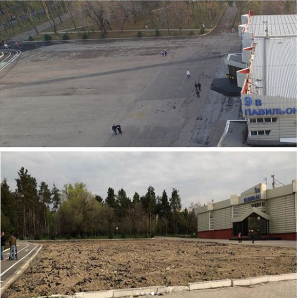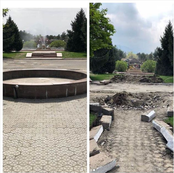 За 15 дней с момента визита акима Алматы Бауыржана Байбека на территории выставочного центра было снято асфальтовое покрытие, снесено кафе Pine Hill, посажено 400 деревьев. В работах принимают участие порядка 200 рабочих, которые занимаются устранением всех замечаний акима "как днем, так и ночью".