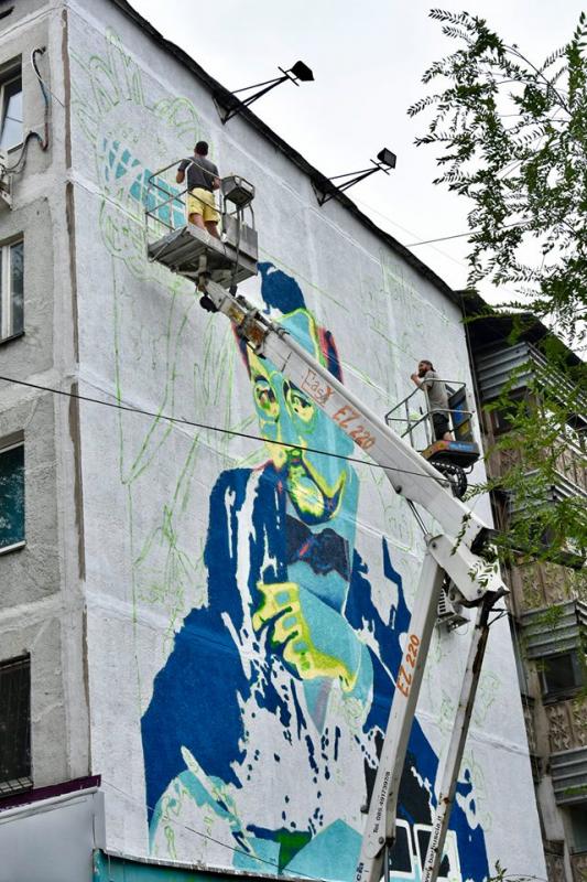 Художник из Украины Андрей Кравич расписал фасад колледжа на Тимирязева - Жарокова. На стене появилась картина казахстанского художника Владимира Гвоздева, более известного под псевдонимом Шеге. Работа называется "Песня", и ее оригинал был выполнен маслом на холсте в 2008 году.