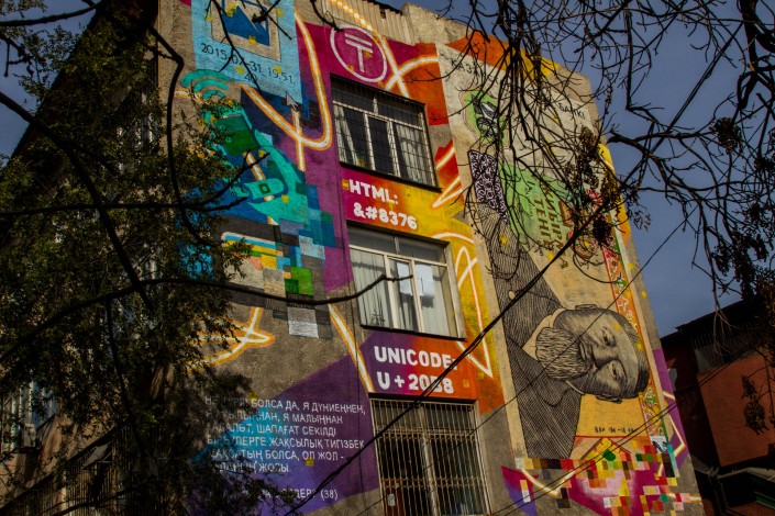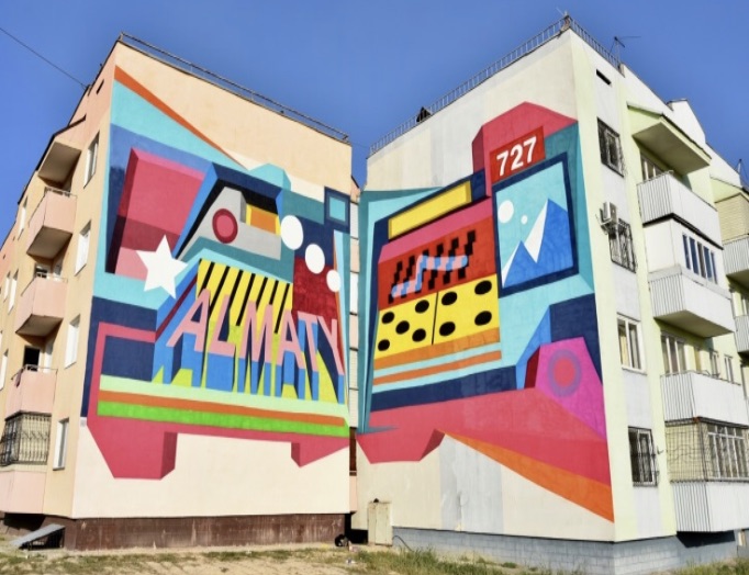 Молодой казахстанский художник, граффити-райтер Marskilla украсил здание в Алатауском районе Алматы. В его работе была использована стилистика digital (компьютерная графика), а также яркие цвета и динамика линий. Кроме этого, художник добавил несколько значимых деталей города. Это горы, домино и код Алматы.