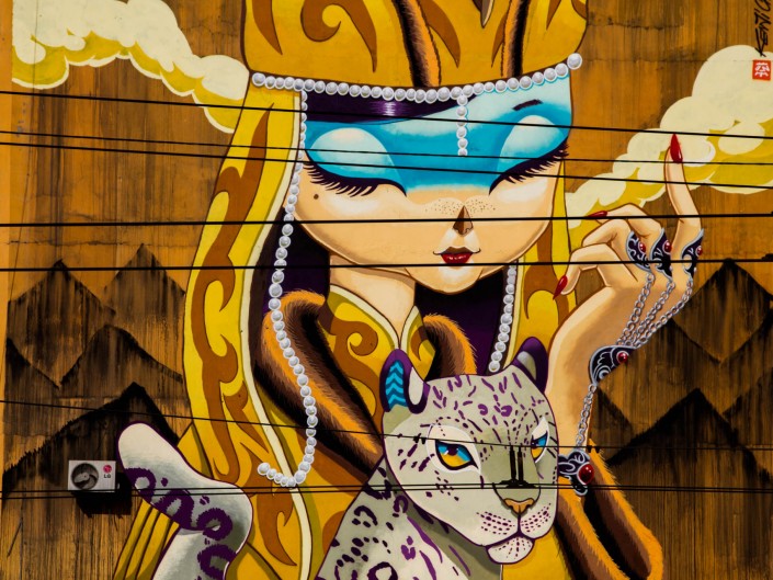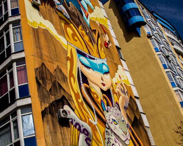 На алматинском мурале Kenji Chai изображена девушка в казахском национальном костюме на фоне гор и облаков, с животными и птицей. Данная задумка художника говорит о том, что все мы должны думать и помнить о природе, заботиться о животных и беречь их.