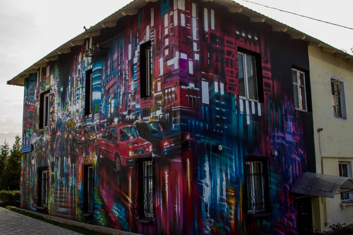 Художник из Сербии AndrejZikic, более известный под псевдонимом Artez, разрисовал здание в алматинском Самале.