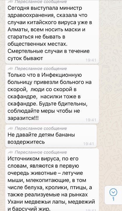 Қытайдың Ухан қаласында шыққан коронавирус туралы қауесет әлеуметтік желілер мен мессенджерлерде тарап жатыр. Желіде дерт туралы алып-қашпа әңгіме көп айтылып жүр. Мысалы, қауіпті індет Қазақстанда да тіркелген немесе ол елде банан арқылы тарап жатыр деген секілді қауесеттер бар. Tengrinews.kz тілшісі коронавирусқа қатысты фейк-ақпараттарды жинап шықты.