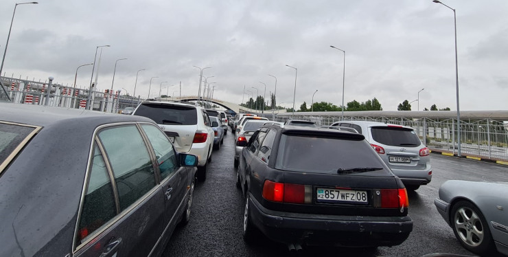 Послушав совета, мы объехали затор и стали расспрашивать водителей, которые стояли почти у КПП. Как оказалось, они стоят тут уже пять часов. Один из них, не поворачивая головы, ответил: "Пять тысяч тенге". Мы стали искать другого и увидели мужчину, у которого лицо было более дружелюбным. И мы не прогадали: он пропустил нас вперед себя, и мы бесплатно вклинились в начало очереди. Конечно, позади нас начали сигналить другие водители.