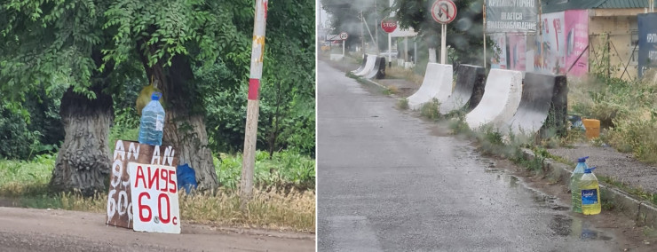 Так как очередь двигалась очень медленно, мы стали выяснять причины заторов. Детально нам никто не объяснял. Основную версию мы собрали по крупицам и обрывочным комментариям местных жителей и водителей. Люди отвечали: "Бензин же", "Ну бензин же возят".