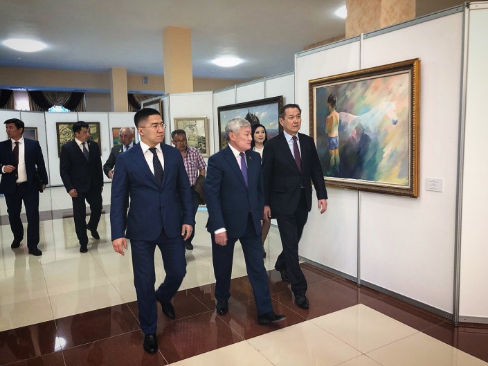 Глава региона посетил концерт с участием столичных творческих коллективов и артистов казахстанской эстрады "Астанадан ақ тілек". До начала концерта аким области посмотрел выставку "Ақ тілекпен, Астана", на экспозиции выставлены свыше 100 уникальных работ 50 самых ярких, разножанровых и видных казахстанских художников. Столичную делегацию возглавил заместитель акима Астаны Ермек Аманшаев.
