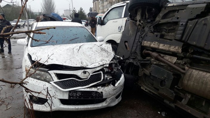 После столкновения с Camry автомобиль Toyota RAV-4 перевернулся и врезался в припаркованный минибус, который от удара откинуло в сторону другого автомобиля марки Lada. По предварительным данным, пострадали шесть человек - четверо детей и две девушки, одна из них беременна. Все пострадавшие госпитализированы.