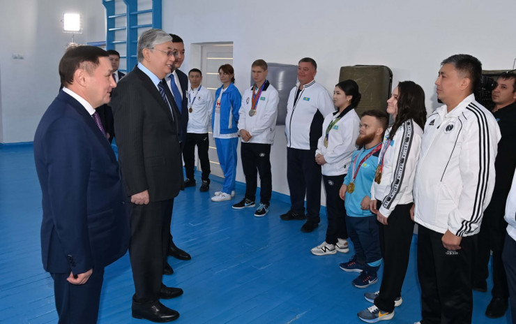 Касым-Жомарту Токаеву были представлены зал тяжелой атлетики и большой игровой зал, где проходят учебно-тренировочные занятия воспитанников ДЮСШ. Глава государства после осмотра школы встретился с именитыми спортсменами и тренерами региона.