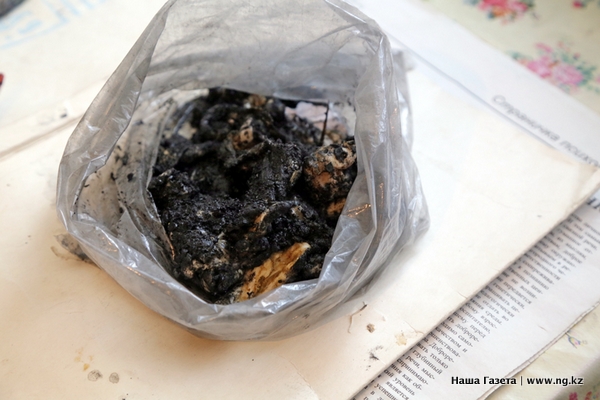 Собравшиеся в доме кочегара журналисты, биолог, а также директор учебного заведения, служащие акимата и представители полиции внимательно рассмотрели загадочное существо. Больше всего оно напоминало дохлую, черную от угольной пыли пиявку или колбасу с плавником, отмечает издание: "В общем, это совершенно не было похоже на динозавра. Рядом в пакете лежали ошметки оболочки, поверхность цвета монтажной пены отблескивала на свету".