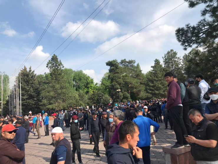 Митингующие перед домом правительства также требовали выдать им оружие для защиты границ в Баткенской области.