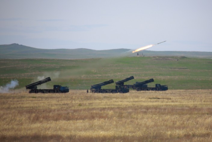 На полигоне "Матыбулак" отрабатываются практические действия мотострелковых, танковых, разведывательных подразделений, оснащенных танками Т-72, БМП-2 (боевая машина пехоты), ЗСУ-23-2 (23 мм спаренная зенитная установка), ЗПУ-2 (14,5 мм зенитная пулеметная установка)