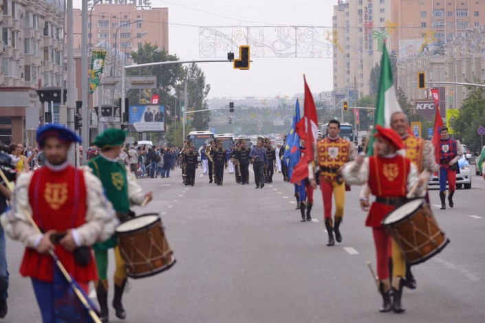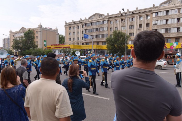 По проспекту Республики (от военно-исторического музея до дворца "Жастар") прошлись более 200 музыкантов, участников фестиваля духовых оркестров "Астана Самалы". По словам художественного руководителя Государственной академической филармонии акимата Астаны Сакена Абдрахманова, участниками парада стали пять коллективов из Казахстана, России и Италии.