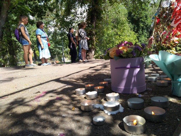 "До сих пор люди приходят, приносят свечи, цветы. Девочки молодые подолгу стоят, плачут. А что делать, как не плакать? Мы живем с этим горем, что потеряли такого мальчика, который нашей стране дал бы очень многое. Мы все гордились им, хотя не были с ним знакомы. Я каждый день прихожу сюда, сколько дней как он погиб, а я каждый день плачу..." - рассказывает жительница Алматы Бахытгуль Искенова.