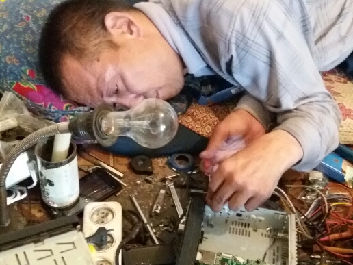 Житель поселка Карой Нуринского района Дос Толегенов имеет инвалидность первой группы. Мужчина прикован к инвалидной коляске практически с рождения. В семь месяцев врачи поставили ему диагноз "детский церебральный паралич". Однако его родители не сдавались и усердно занимались его реабилитацией. В школу карагандинец не ходил, а обучался на дому. Его любимым предметом стала физика. Учитель приходил к нему домой несколько раз в неделю. Именно у него Дос и научился ремонтировать бытовую технику. Позже мужчина женился. Сейчас у него трое детей. Самой старшей дочери 10 лет, среднему сыну восемь, а младшей пять.