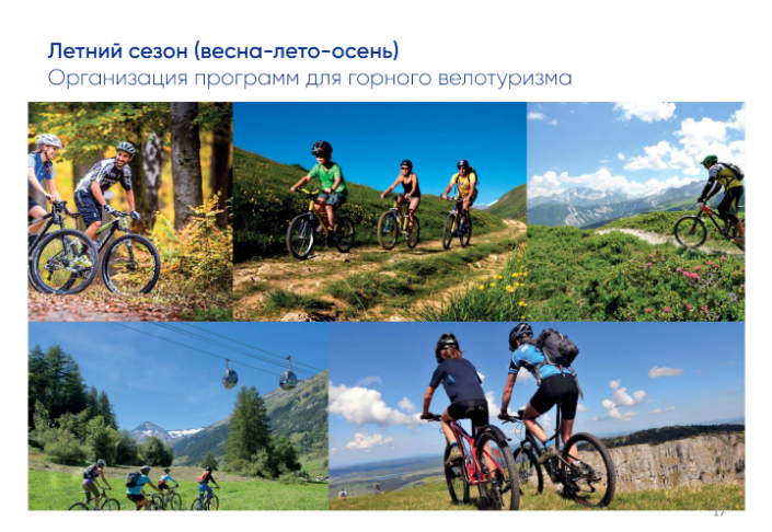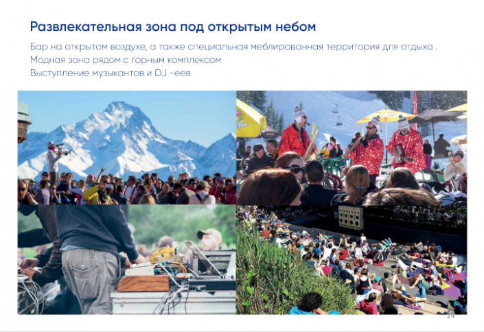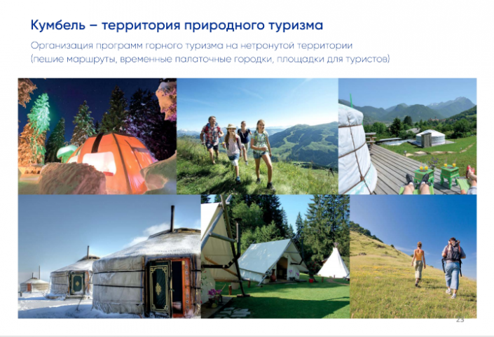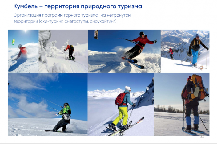 Предлагаемая концепция организации курорта опирается на два сегмента: "Долина" будет тщательно обустроена и предназначена для различных видов деятельности в течение всех четырех сезонов года, а центр "Кумбель" останется в своем естественном, нетронутом состоянии.