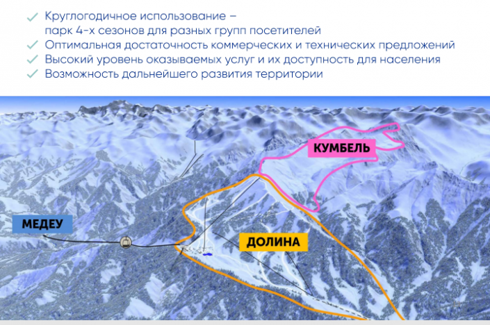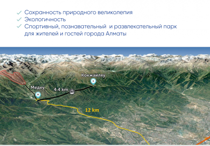 "Курорт "Кок-Жайляу" - это уникальная возможность создать первый в Казахстане горный всесезонный курорт по высшим международным стандартам, включив его в систему зеленых зон и парков города Алматы. Это место без доступа для автомобильного транспорта", - сказал генеральный директор Almaty Mountain Resorts Наиль Нуров.