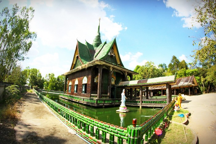 К слову, в Таиланде есть "стеклянный" храмовый комплекс, который называется Ват Па Маха Чеди Ков. Он построен из полутора миллиона стеклянных зеленых бутылок. Пустые емкости из под пива начали собирать в 1984 году, а через 2 года была завершена основная часть строения.