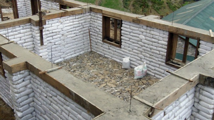Мешки с землей и песком тоже иногда выступают в роли своеобразных "кирпичей". Матерчатую тару заполняют, завязывают покрепче и строят из них стены. Сайран Фазылов отмечает, что эти дома насколько теплые, настолько и недолговечные.